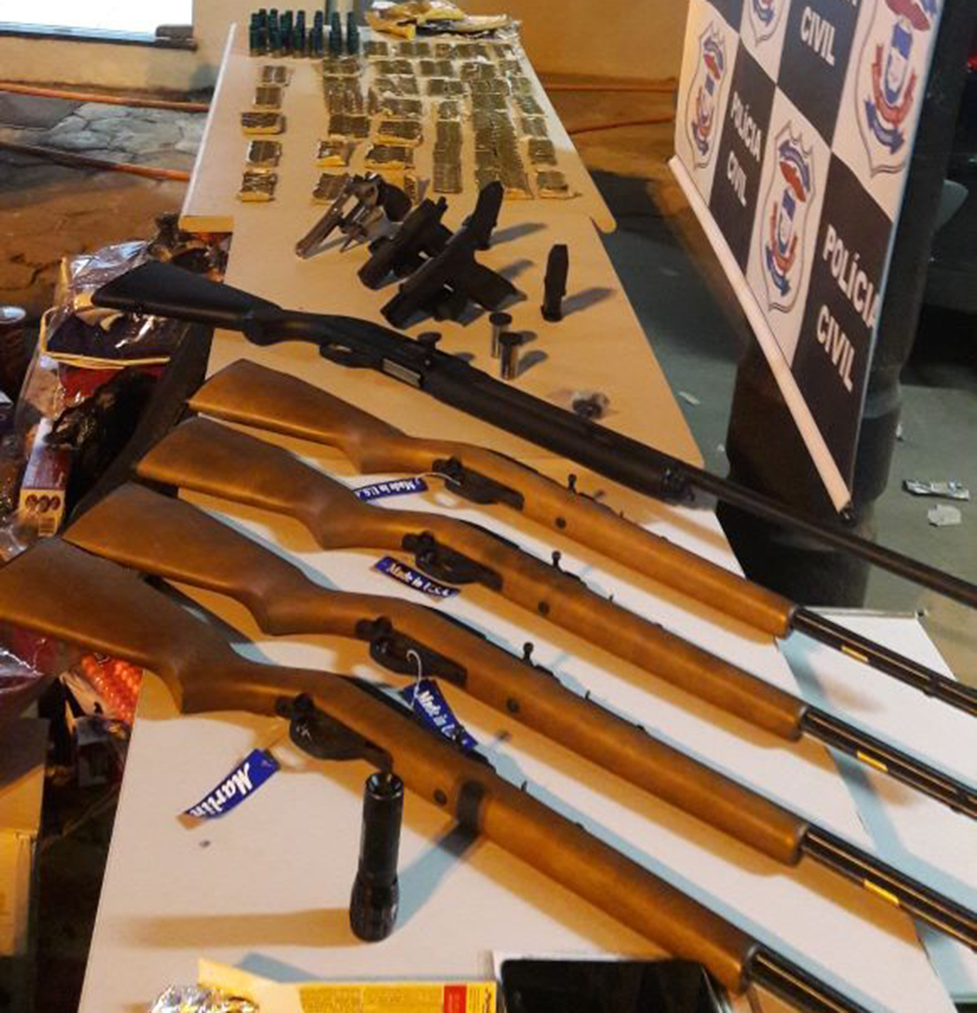 Um arsenal de munições e armas foi apreendido pela PolÃcia Judiciária Civil, em Primavera do Leste (231 km ao Sul), na madrugada deste domingo (03.09), durante investigação da Delegacia Especializada de Roubos e Furtos (Derf), do municÃpio.