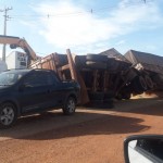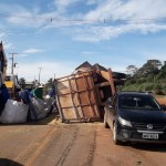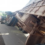 b89c8421-65e7-4560-8314-56a0a1dad228         Na manhã desta sexta-feira(22) o transito em meia pista sendo controlado  com o apoio da  Guarda Municipal, enquanto outras providências são tomadas para a retirada da carreta e do produto que espalho por vários metros na pista.