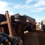 Carreta Bitrem tomba carregada de soja na MT/320 em Colider