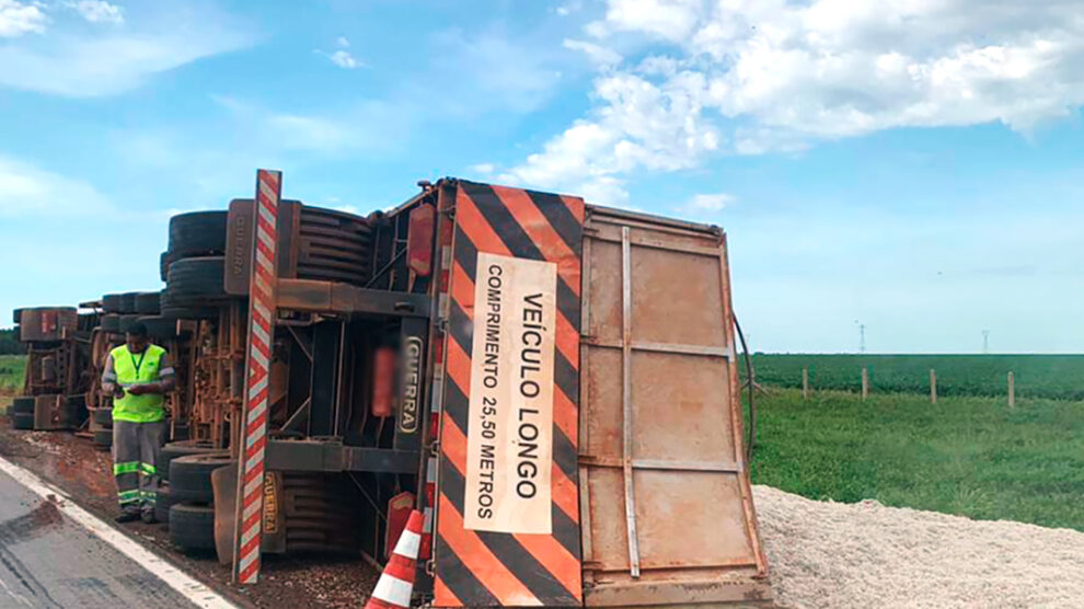 A versão apurada é que o veículo seguia sentido Sul quando houve saída de pista seguida de tombamento. O veículo estava carregado com carga de caroço de algodão e parte da carrega derramou às margens da pista.