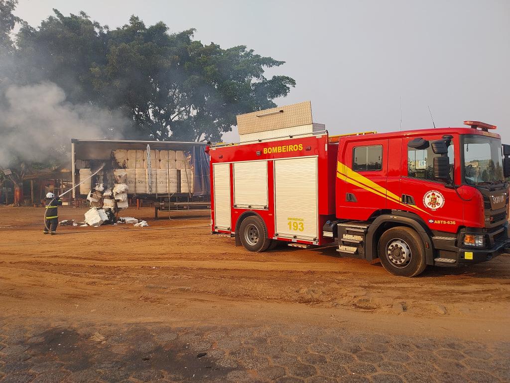 O Corpo de Bombeiros Militar de Mato Grosso (CBMMT) combateu, nesta sexta-feira (13.09), um incêndio em uma carreta carregada de pluma de algodão na BR-364, em Alto Araguaia (a 418,2 km de Cuiabá). Ninguém ficou ferido.