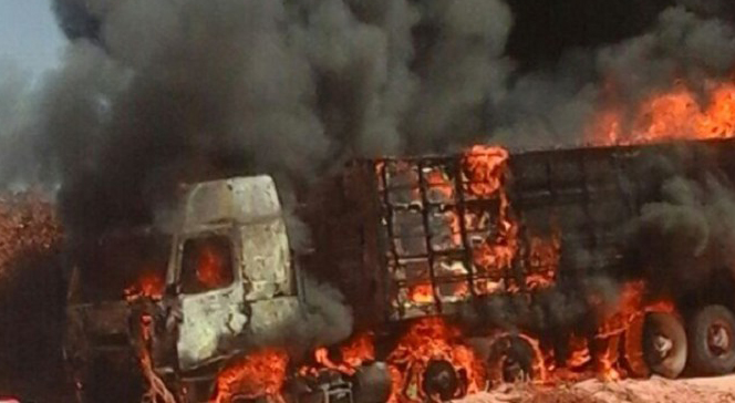 Desesperado e para evitar que as chamas tomassem conta de todo o veÃculo, o motorista utilizou o extintor da carreta e outros que foram cedidos por quem passava pelo local. Mesmo assim o fogo continuou e queimou por completo o veiculo.