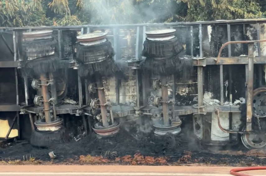 Por causa do incêndio, a rodovia precisou ser totalmente interditada para o trabalho das equipes de emergência e para garantir a segurança dos motoristas que trafegavam pelo trecho.