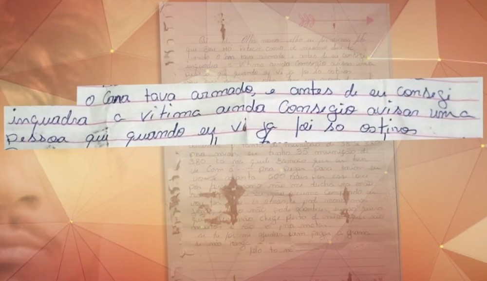 Na carta, Lázaro ainda diz que precisa recarregar a arma de fogo. A polícia apura quem seria o destinatário do pedido de ajuda.
