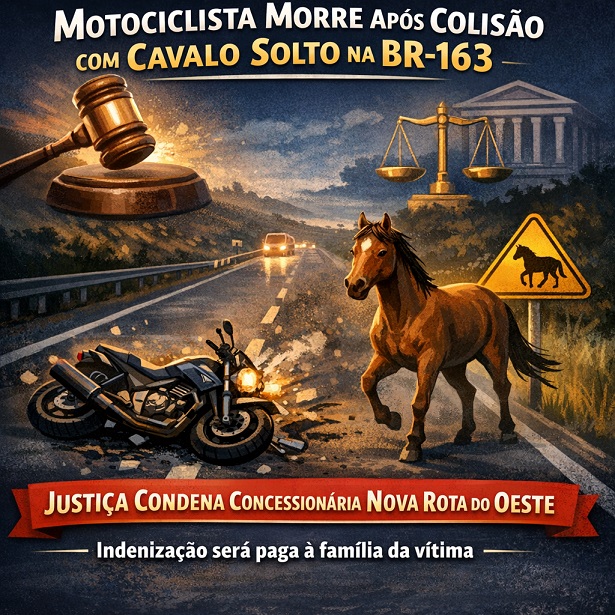 A Nova Rota do Oeste foi condenada pelo Tribunal de Justiça de Mato Grosso por um acidente ocorrido na BR-163, no qual um motociclista morreu após atingir um cavalo solto na pista. A decisão foi unânime e manteve a sentença da primeira instância.