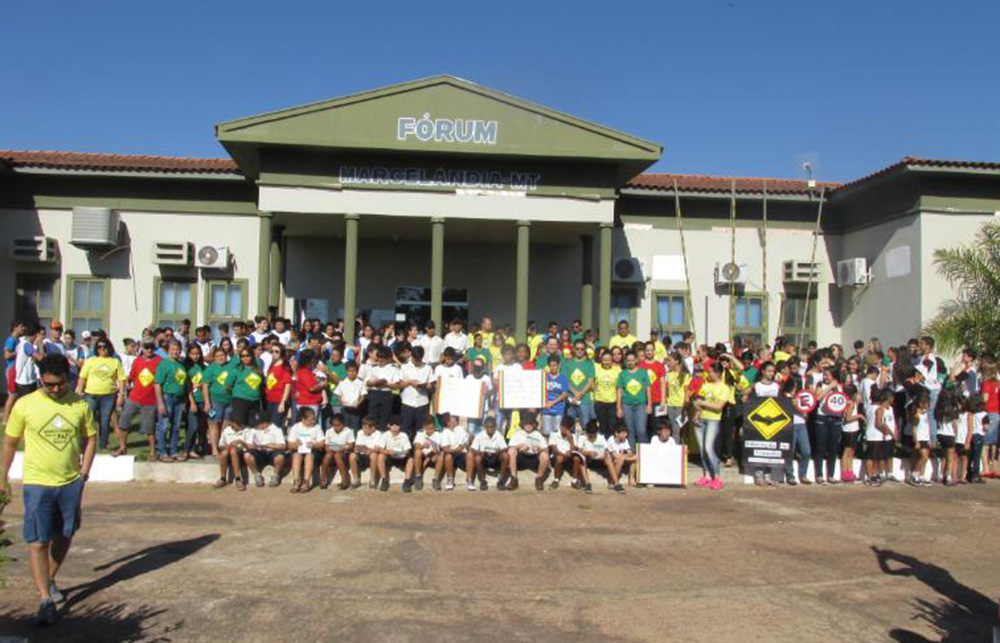Mais de 300 pessoas, entre adultos, jovens e crianças, participaram da “Campanha pela Paz no Trânsito” realizada pelo Fórum da Comarca de Marcelândia  na manhã de quinta-feira (14 de julho).