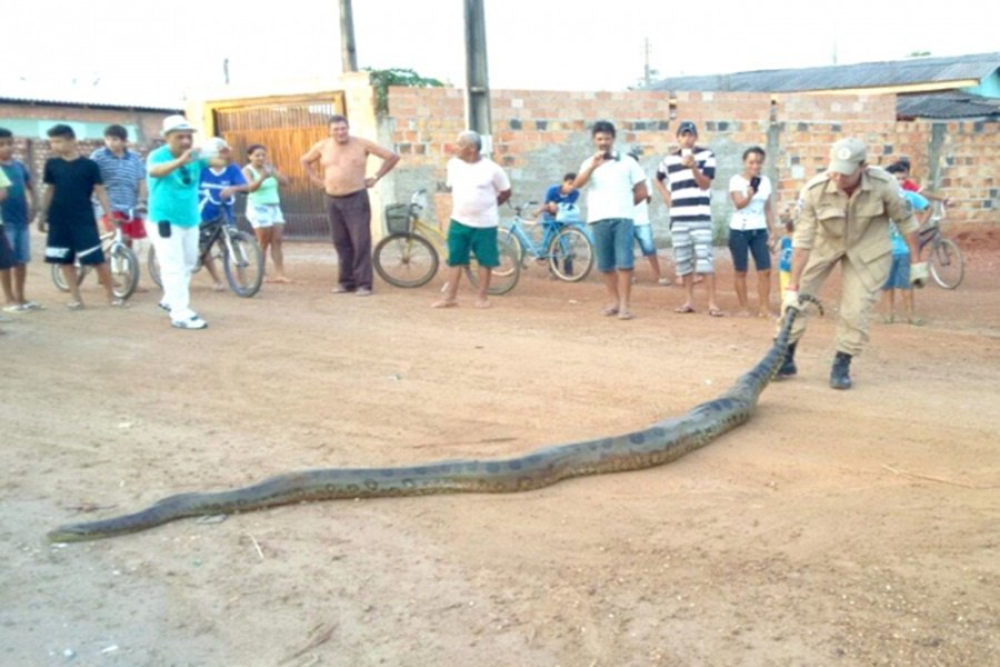 Uma sucuri de mais de 5 metros foi encontrada em uma nascente por moradores do bairro Maria Carolina, em Sinop, nortão do Estado do Mato Grosso, na tarde de quarta-feira (12). Após encontrarem a cobra, o Corpo de Bombeiros foi acionado pelos moradores para fazer a remoção segura do bicho. A sucuri foi retirada da nascente e solta no Rio Teles Pires.