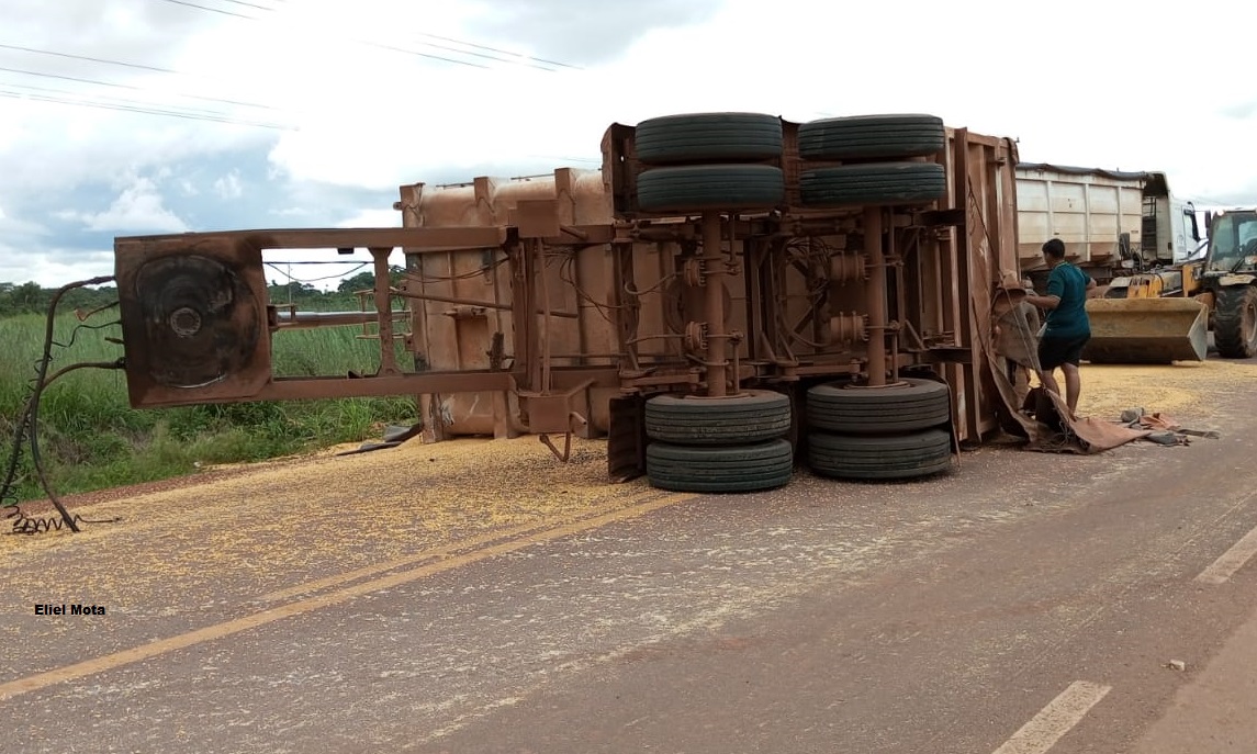 A informação é que, ao tentar desviar o bitrem da moto, um dos vagões que estava carregado de milho, tombou na pista, deixando-a interditada. Ferido o condutor da moto foi atendido no local pelos bombeiros e depois encaminhado ao Hospital Regional.