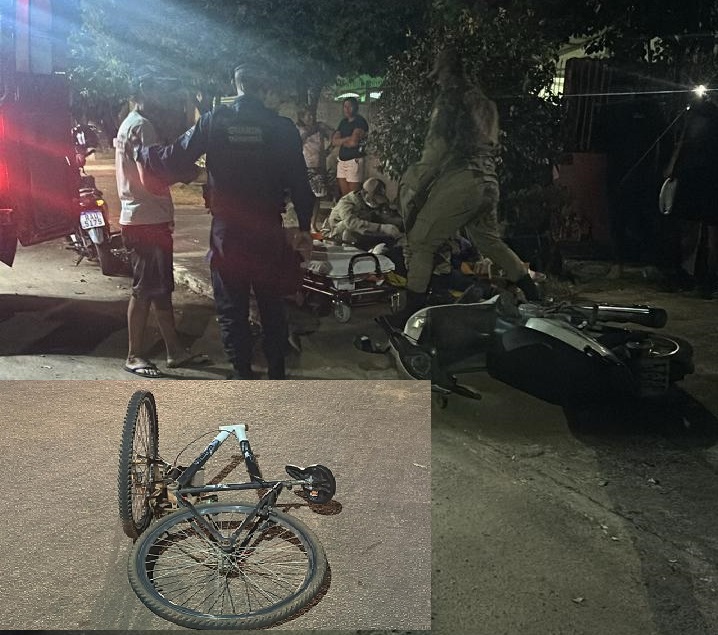 Com fratura exposta no pé, o motociclista atendido pelos bombeiros foi encaminhado ao hospital regional, já o ciclista não sofreu nenhum ferimento.