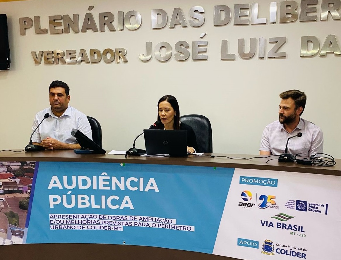 Com objetivo de realizar obras de ampliação e melhorias nas rodovias MT-320, na manhã desta quinta-feira (20), no plenário da Câmara Municipal de Colíder, o Governo de Mato Grosso, por meio da Agência de Regulação dos Serviços Públicos Delegados do Estado (Ager) e da Secretaria de Estado de Infraestrutura e Logística (Sinfra), em conjunto com a Concessionária Via Brasil, realiza audiência pública para apresentar o plano funcional das obras de ampliação e melhorias nos trechos concedidos das rodovias MT-320.