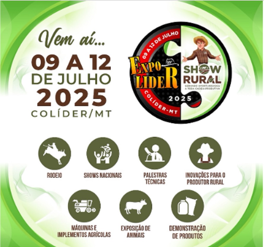 De 9 a 12 de julho, a cidade de Colíder se tornará o centro das atenções com a realização da Expolíder e da Show Rural. Este grande evento agro promete uma programação diversificada, incluindo feiras tecnológicas, emocionantes montarias em touros e shows nacionais, garantindo diversão para todas as idades.