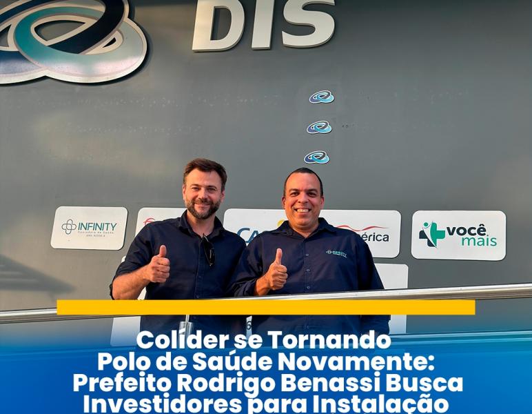 O prefeito Rodrigo Benassi esteve na cidade de Sorriso nesta terça-feira (11) em busca de investidores para fortalecer Colíder como polo de saúde novamente. A gestão municipal trabalha para viabilizar a instalação de uma empresa especializada em exames de ressonância magnética e outras especialidades, garantindo mais acesso, agilidade nos diagnósticos e qualidade no atendimento à população.