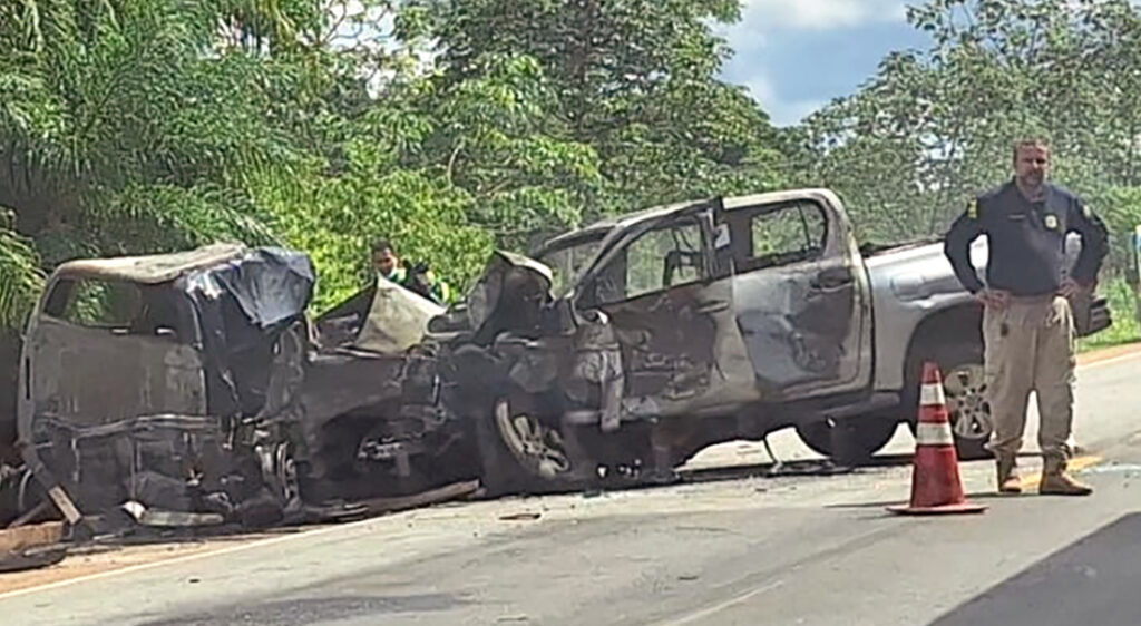 Um dos veículos parou às margens da pista e ficou totalmente destruído. Já a caminhonete teve parte frontal bastante danificada.