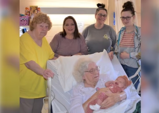 O encontro entre a Tetravó e a bebê foi acompanhado por Frances Snow, de 77 anos, filha da matriarca, a neta, Gracie Snow Howell, de 58, a bisneta Jacqueline Ledford, de 39, e a tataraneta Jaisline Wilson, 19.