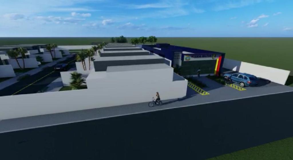 A vila militar ou condomínio residencial militar terá 12 casas padrão destinada ao policial e sua família.