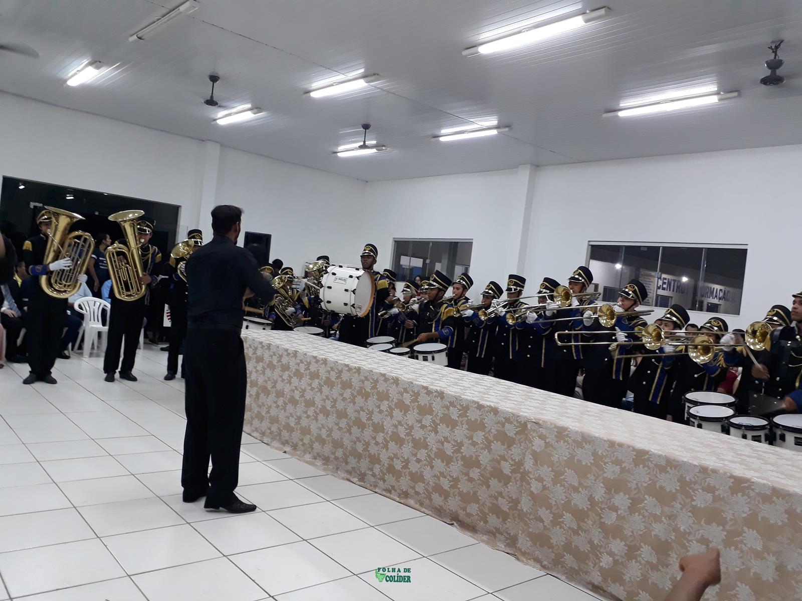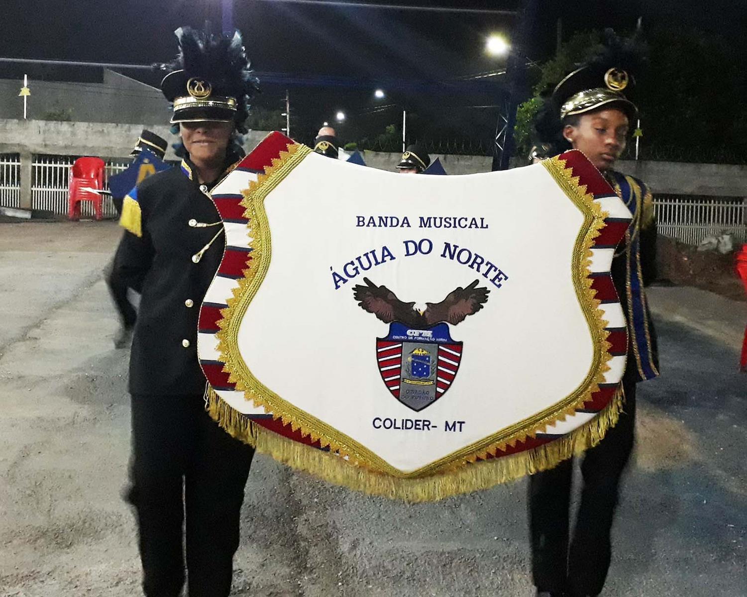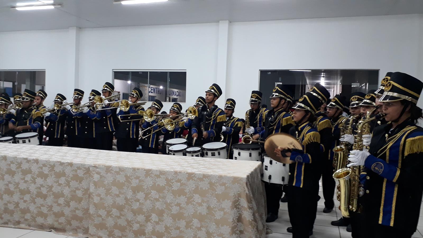 E abrilhantando aquele feliz acontecimento e  encantando o público presente estava a Banda Ãguia do Norte, toda majestosa, renovada em equipamentos e vestes,  regida pelo maestro Emanoel Wellington de Souza ladeado da sua esposa a professora coreografa Vanusa Miranda. Â