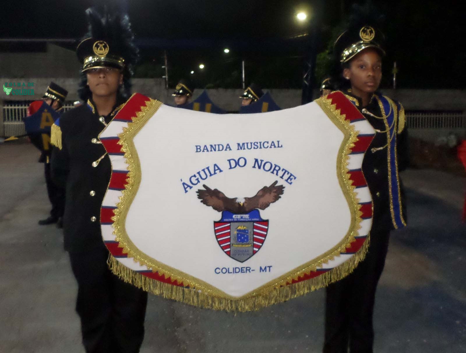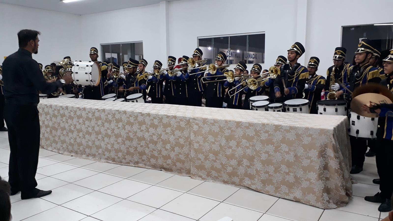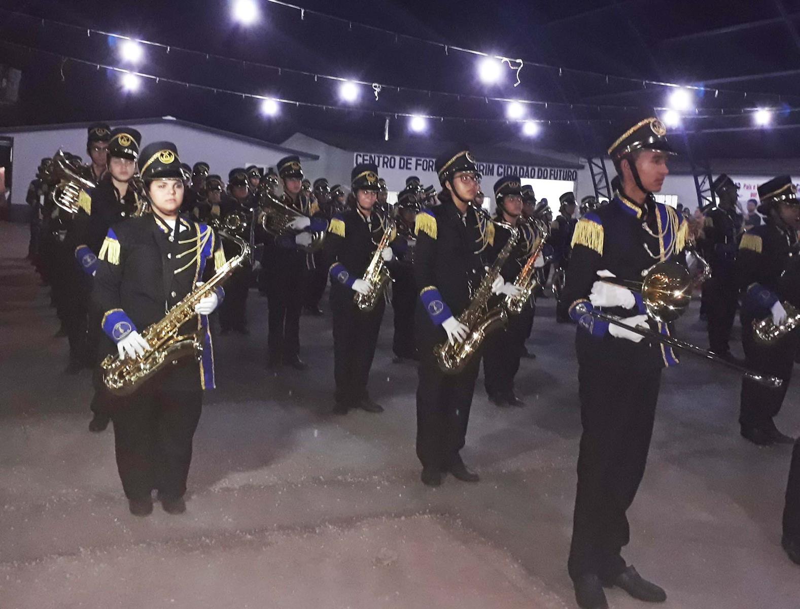 E abrilhantando aquele feliz acontecimento e  encantando o público presente estava a Banda Ãguia do Norte, toda majestosa, renovada em equipamentos e vestes,  regida pelo maestro Emanoel Wellington de Souza ladeado da sua esposa a professora coreografa Vanusa Miranda. Â