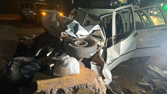 Um grave acidente ocorrido na noite deste domingo (3), no bairro Industriário, em Cuiabá, deixou duas pessoas adultas e uma criança gravemente feridas após o carro em que estavam colidir com um ônibus e atingir um bloco de concreto. As vítimas foram arremessadas do veículo.