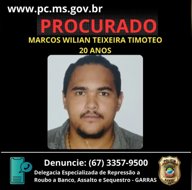A Polícia Civil pede auxílio da população. Informações sobre o paradeiro de Marcos Wilian podem ser repassadas de forma anônima pelo telefone do Garras: (67) 3357-9500.