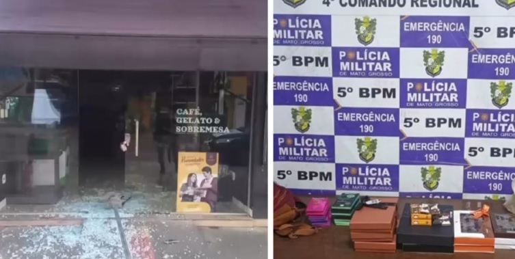 No local, os militares se depararam com um dos vidros estourados e diversos itens levados. Contudo, os suspeitos já não estavam mais na loja.