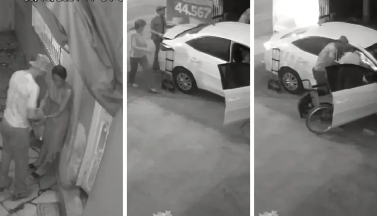 Um deles vai ao lado do passageiro e acompanha enquanto Maria Benedita é retirado o carro e colocada na cadeira de rodas, enquanto o outro recolhe os pertences da filha e da cuidadora. Após cometer o crime, os bandidos fogem com o veículo.