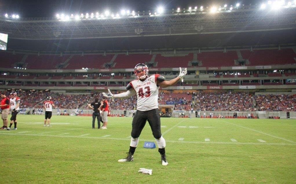 O currÃculo do novo reforço tem capÃtulos pelo Nis Imperatori (Sérvia-2014), pelo All-American Eagles (México-2014), pelo Indjija Indians (Sérvia-2015), João Pessoa Espectros (Brasil-2015), ano em que foram campeões brasileiros, Leme Empyreo Lizards (Brasil-2016) e, ultimamente, pelo Istanbul Yeditepe Eagles (Turquia-2017), onde foi MVP Defensivo (Most Valuable Player) com 77 tackles, quatro fumbles forçados, cinco sacks e 19 tackles for loss em nove partidas.