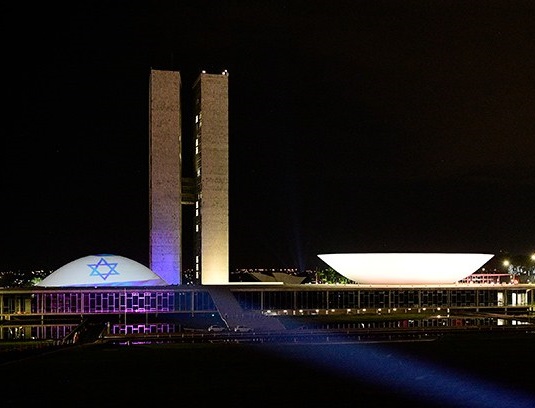 - A cúpula do Senado Federal, na Praça dos Três Poderes, foi iluminada com a projeção da bandeira de Israel na noite desse domingo (8). A iniciativa foi uma resposta de apoio ao país bombardeado pelo grupo terrorista palestino Hamas, no sábado (7).