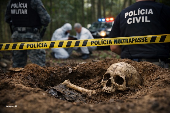 De acordo com informações da Polícia Militar, após receber a denúncia, uma equipe se deslocou até o local indicado e iniciou buscas na região. Após cerca de duas horas de procura, os policiais localizaram a cova onde estava enterrada a ossada humana.