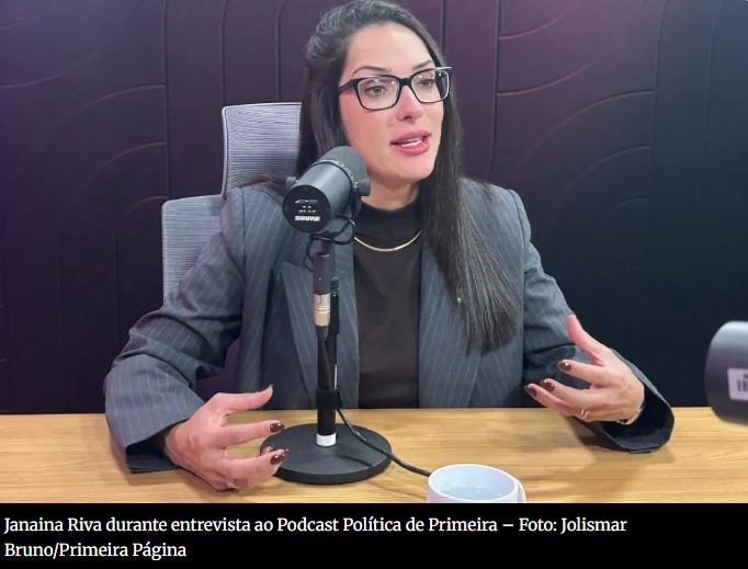 Janaina Riva durante entrevista ao Podcast Política de Primeira – Foto: Jolismar Bruno/Primeira Página