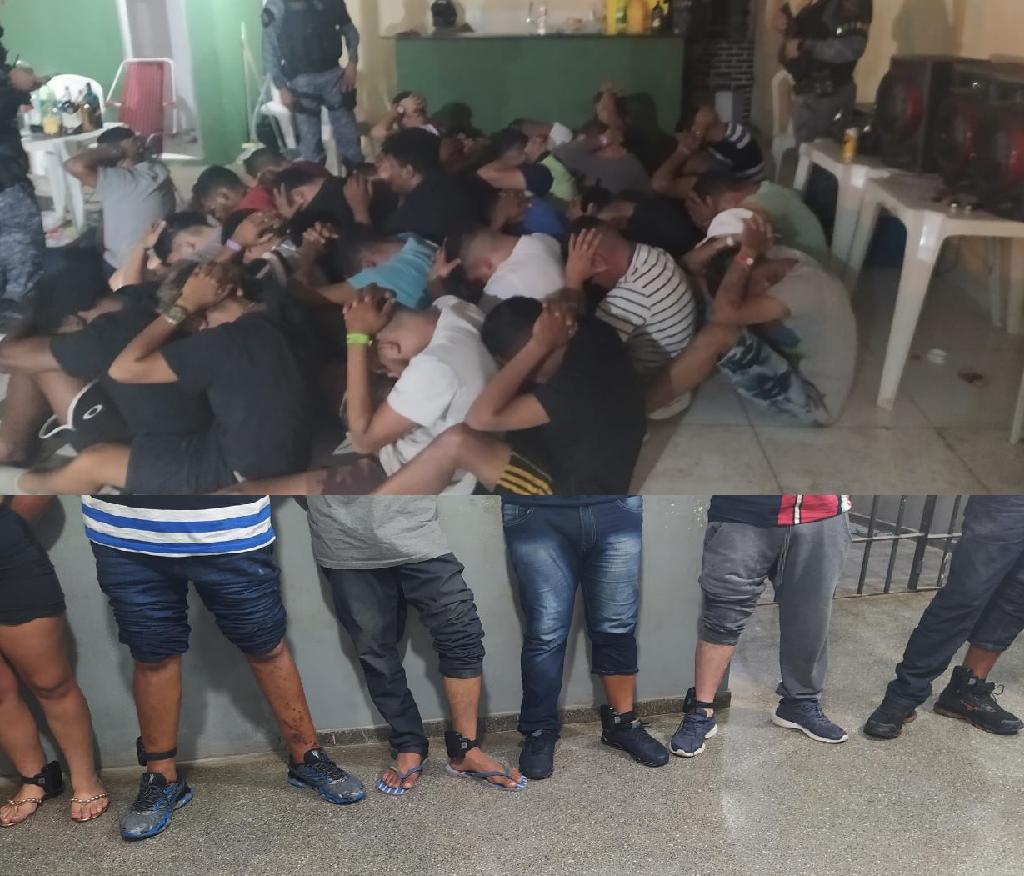 Com a situação contida, os policiais descobriram seis adolescentes com idade entre 15 e 17 anos, seis monitorados por tornozeleira eletrônica.