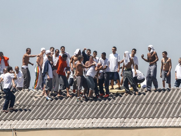 Os rebelados subiram nos telhados da unidade, quebraram vidros e colocaram fogo em colchões. Todas as 31 galerias do presÃdio foram tomadas pelos presos.