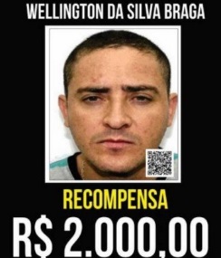 O programa Disque Denúncia, organização não governamental que trabalha em parceria com a Secretaria Estadual de Segurança do Rio, oferece uma recompensa de R$ 2 mil por informações que levem à prisão de Wellington da Silva Braga. Conhecido como Ecko, ele é apontado pela polÃcia como chefe do grupo criminoso Liga da Justiça, que atua em várias regiões da zona oeste da capital e na Baixada Fluminense.