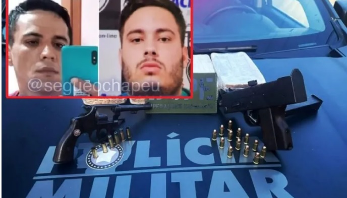 Eles foram identificados como Gustavo Bringhenti Lima, de 25 anos e Ronaldo Rios de Freitas, de 33. Com eles, os policiais apreenderam uma submetralhadora 380, um revólver calibre 32, munições e 4 barras de pasta base de cocaína.