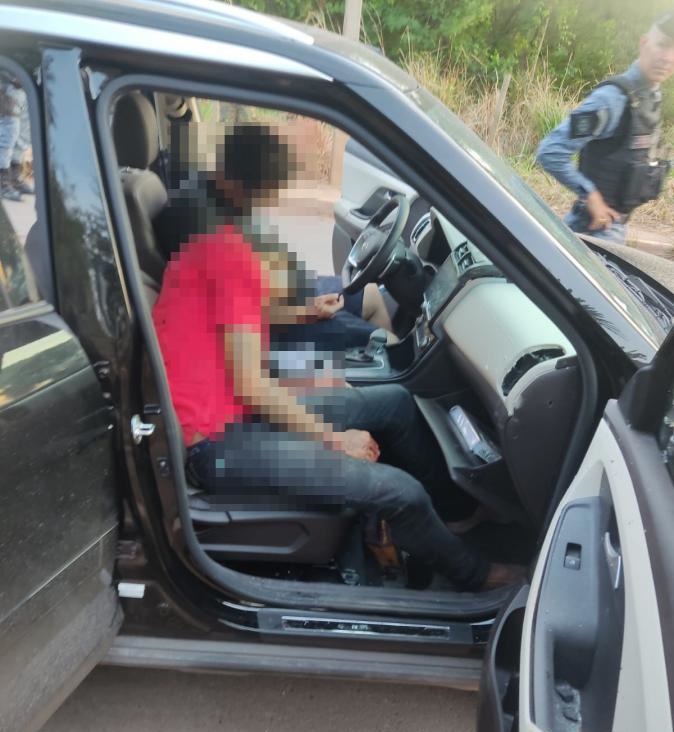 Durante as rondas, os policiais localizaram o veículo suspeito próximo do Condomínio Belvedere 2, onde foram dadas ordens de parada, que foram ignoradas pelos suspeitos.