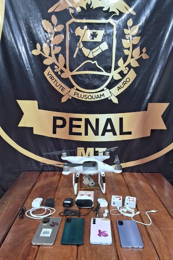 Nesta ação foram apreendidos, além do drone, oito aparelhos celulares, seis carregadores completos, uma fonte, um carregador power bank, cinco fones de ouvido e três isqueiros.