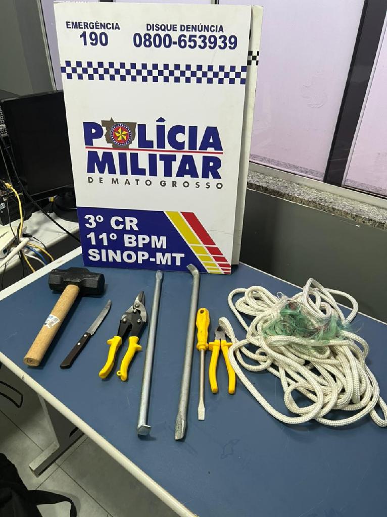As ferramentas, que seriam utilizadas no crime, foram apreendidas pela PM