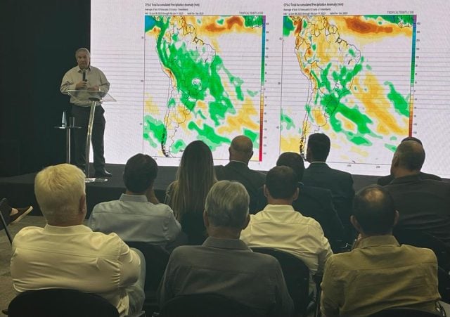 “El Niño trará mudanças com as chuvas. As chuvas de primavera devem começar mais cedo, o que significa em soja mais cedo. Precisamos dar uma saída para a safrinha de milho até janeiro para dar lugar para a safra de soja”, pontuou Molinari.