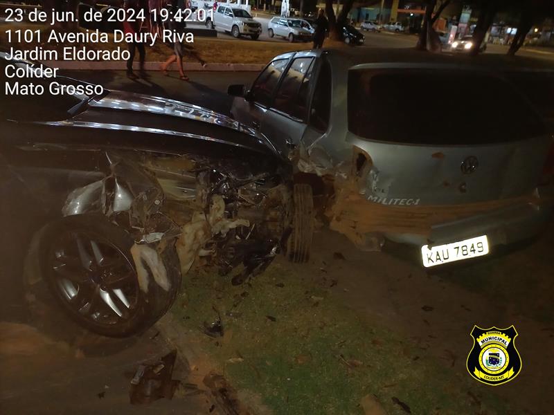 Acionada a Guarda Municipal de Transito, de Colider atendeu na noite de ontem(23) ocorrência envolvendo um veículo Ford Fusion e um VW Gol, esse que estacionado na avenida Dauri Riva, nas proximidades do Posto Pit Stop, foi atingido pelo Fusion. O forte impacto que jogou o Fusion para cima da calçada deixou ambos os veículos bastante danificados.