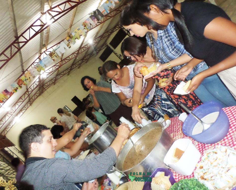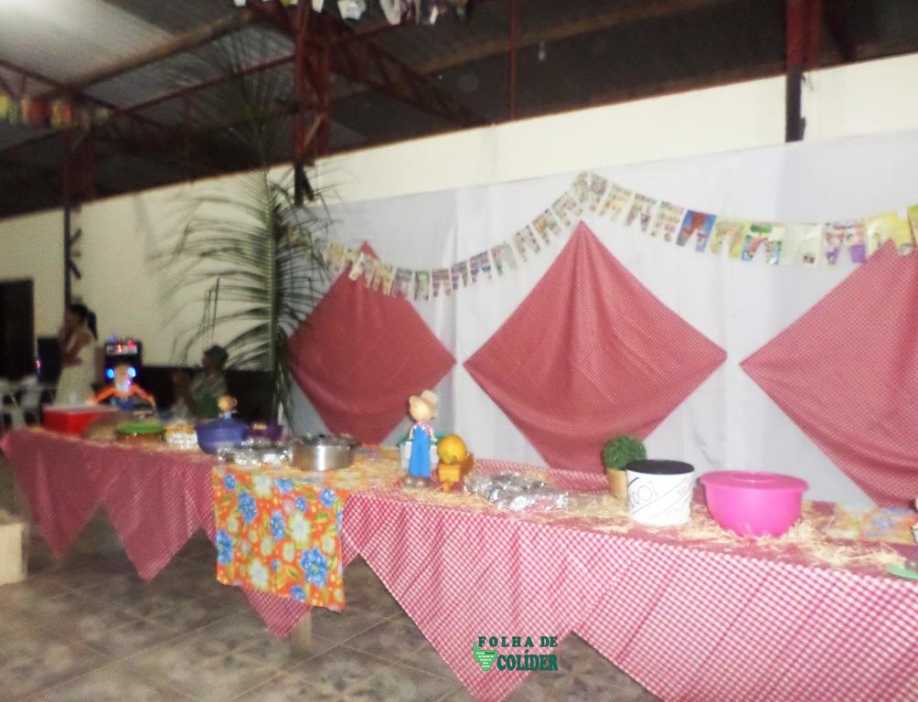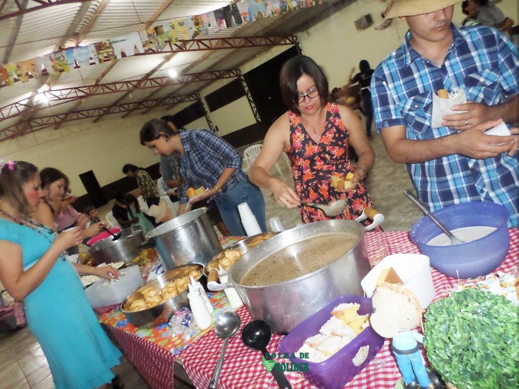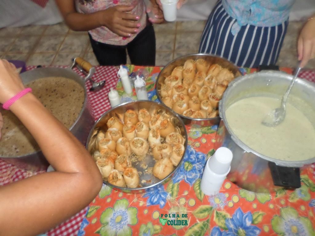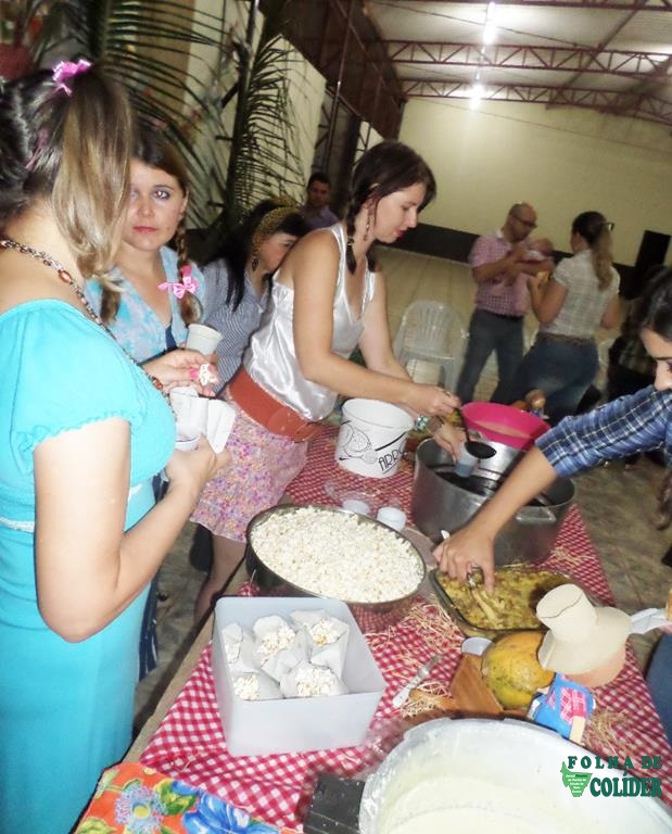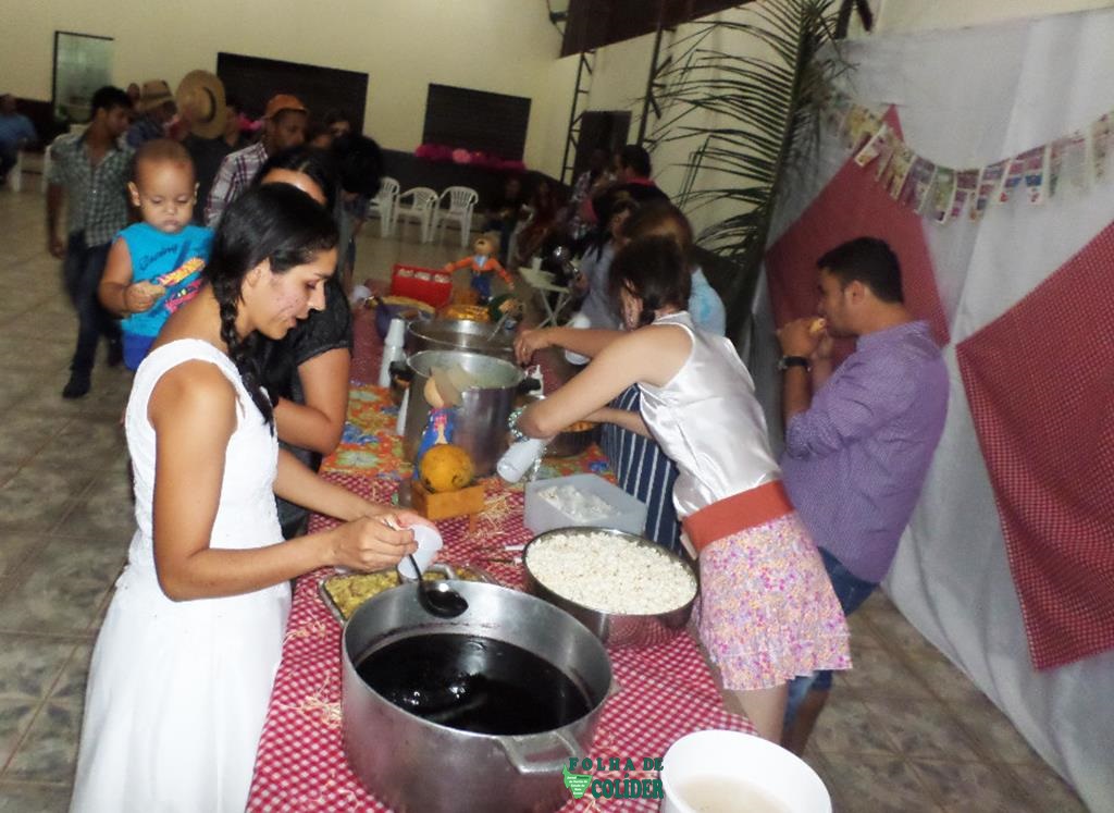Quentão a base de suco e uva, huuumm, uma delÃcia!!! Pipoca, bolo de milho, chá de amendoim, bolos, doces, tortas, polentas,  paçoca de amendoim e muita brincadeira, tudo isso e muito mais, mas só depois do momento de oração, louvor e exortação da palavra de Deus pelo pastor Paulo Jesuel  à s mais de cem pessoas presentes, entre membros da igreja( componentes de células) e visitantes.