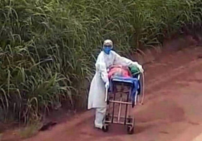 No trajeto a pé do motorista e da enfermeira, a paciente chegou a ter uma queda de oxigênio no sangue. Ela é diabética e apresentava complicações da Covid.