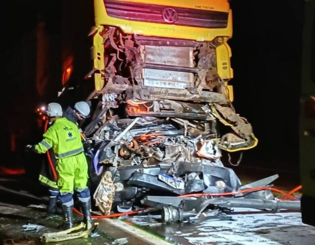 Acidente envolvendo duas carretas e uma Toyota Hilux ocorreu no km 489; vítima morreu no local e rodovia foi liberada por volta das 3h após perícia e remoção dos veículos