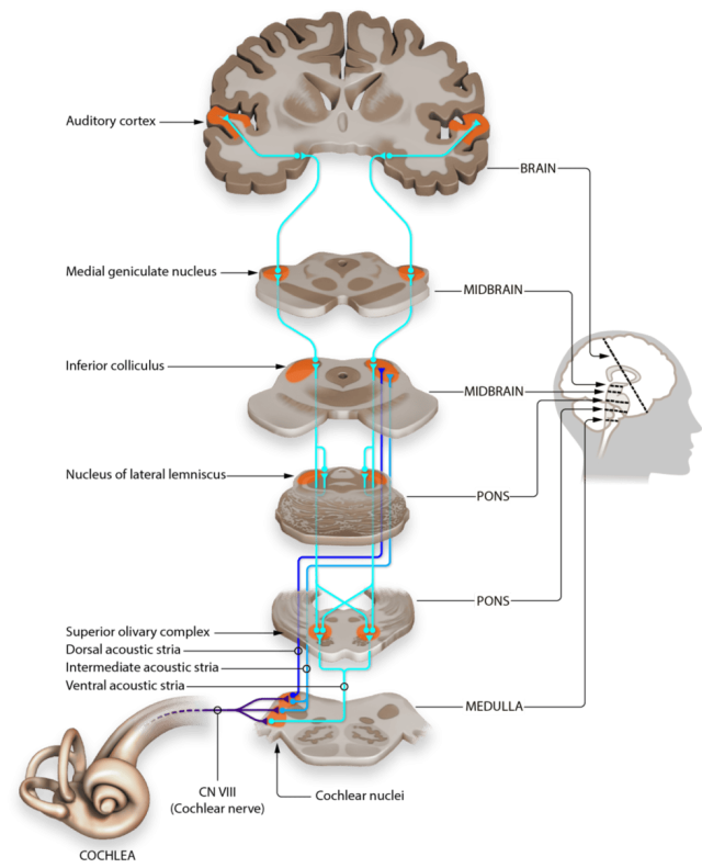 O lado esquerdo, por exemplo, detecta características importantes da fala, como a identificação de palavras diferentes. Já o lado direito processa melhor melodias e a entonação da fala. Pesquisadores acreditam que essa divisão começa na cóclea, uma região interna do ouvido.