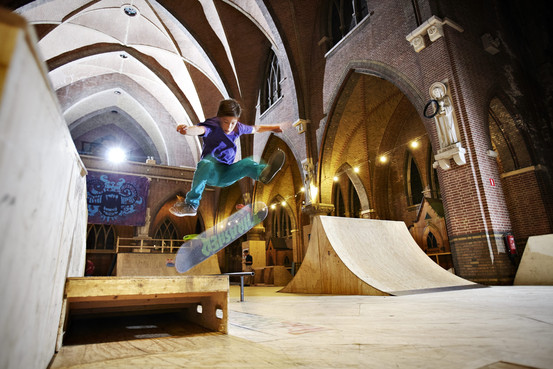 Numa noite recente, mais de 20 skatistas em roupas batidas realizavam saltos perigosos em uma velha igreja em Arnhem, na Holanda, observados por um mosaico com a aparência de Jesus e uma série solene de estátuas de santos. Trata-se da pista de skate Arnhem Skate Hall, uma reencarnação desconcertante da Igreja de St. Joseph, que já ressoou com as preces de cerca de mil fiéis.