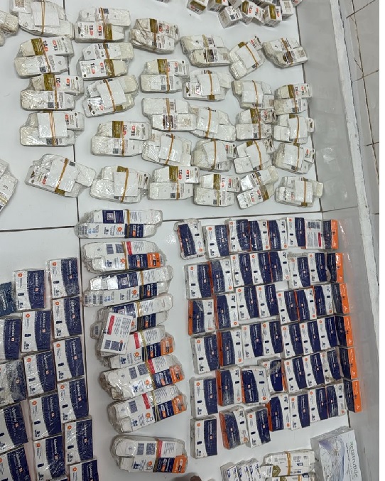 Na vistoria detalhada, os agentes encontraram diversos produtos de origem estrangeira sem comprovação fiscal, entre eles eletrônicos, perfumes, medicamentos e substâncias de uso estético. Parte do material, incluindo canetas emagrecedoras, estava escondida em compartimentos ocultos nos painéis do veículo.