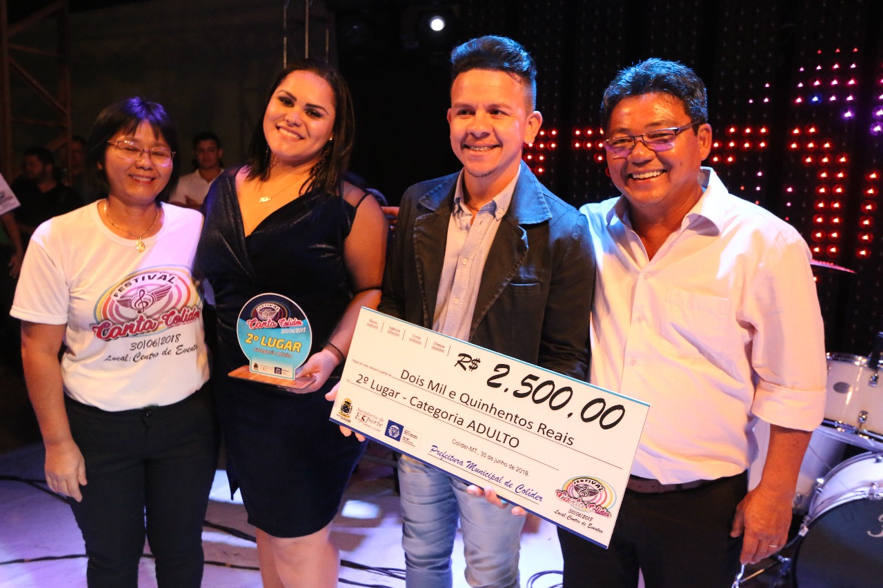 Com muito brilhantismo foi realizado em ColÃder, no último final de semana, a fase final do festival Canta ColÃder, um festival de música como há muito tempo não se via. O festival foi realizado no último sábado, no Centro de Eventos e fez muita gente recordar dos tempos áureos dos festivais estudantis que eram realizados em ColÃder e região. Os finalistas, por sua vez, deram um verdadeiro show de talentos, em todas as categorias. O prefeito Noboru Tomiyoshi parabenizou o secretário de Educação, Márcio Fernandes, por buscar recursos junto ao governo do Estado para realização do evento, que teve uma excelente premiação em dinheiro para os vencedores.