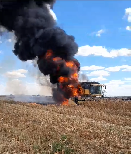 Ainda segundo os bombeiros, ao chegarem ao local, o incêndio havia sido controlado. As causas do que teria iniciado o fogo na colheitadeira e o tamanho da área atingida não foram divulgadas; não há informação de feridos.