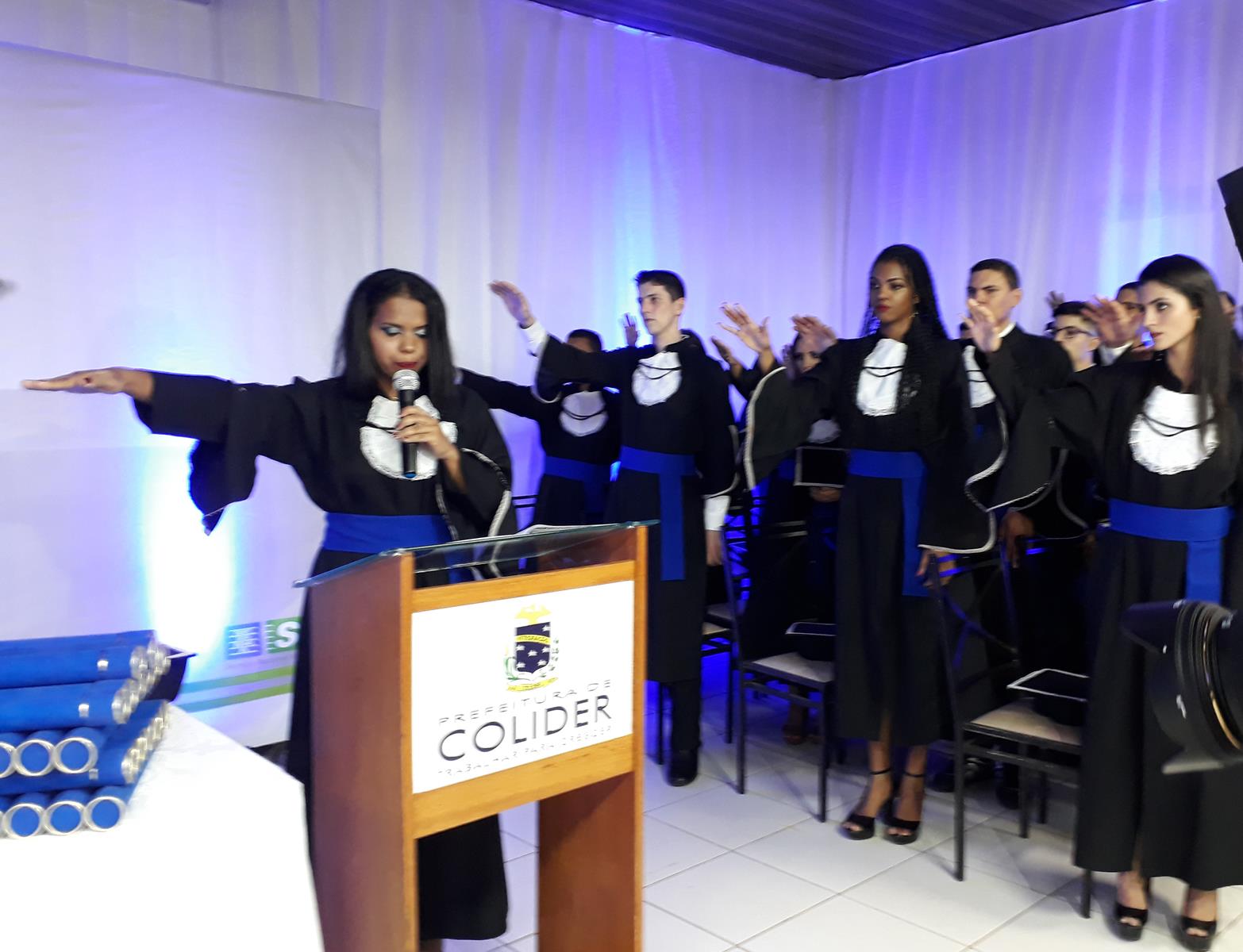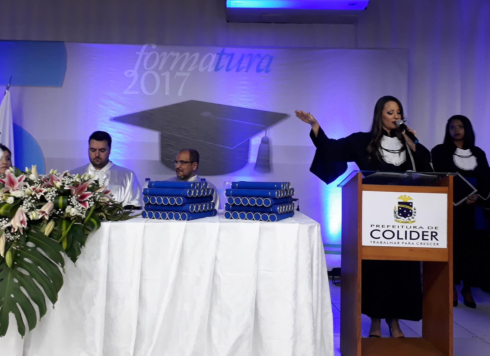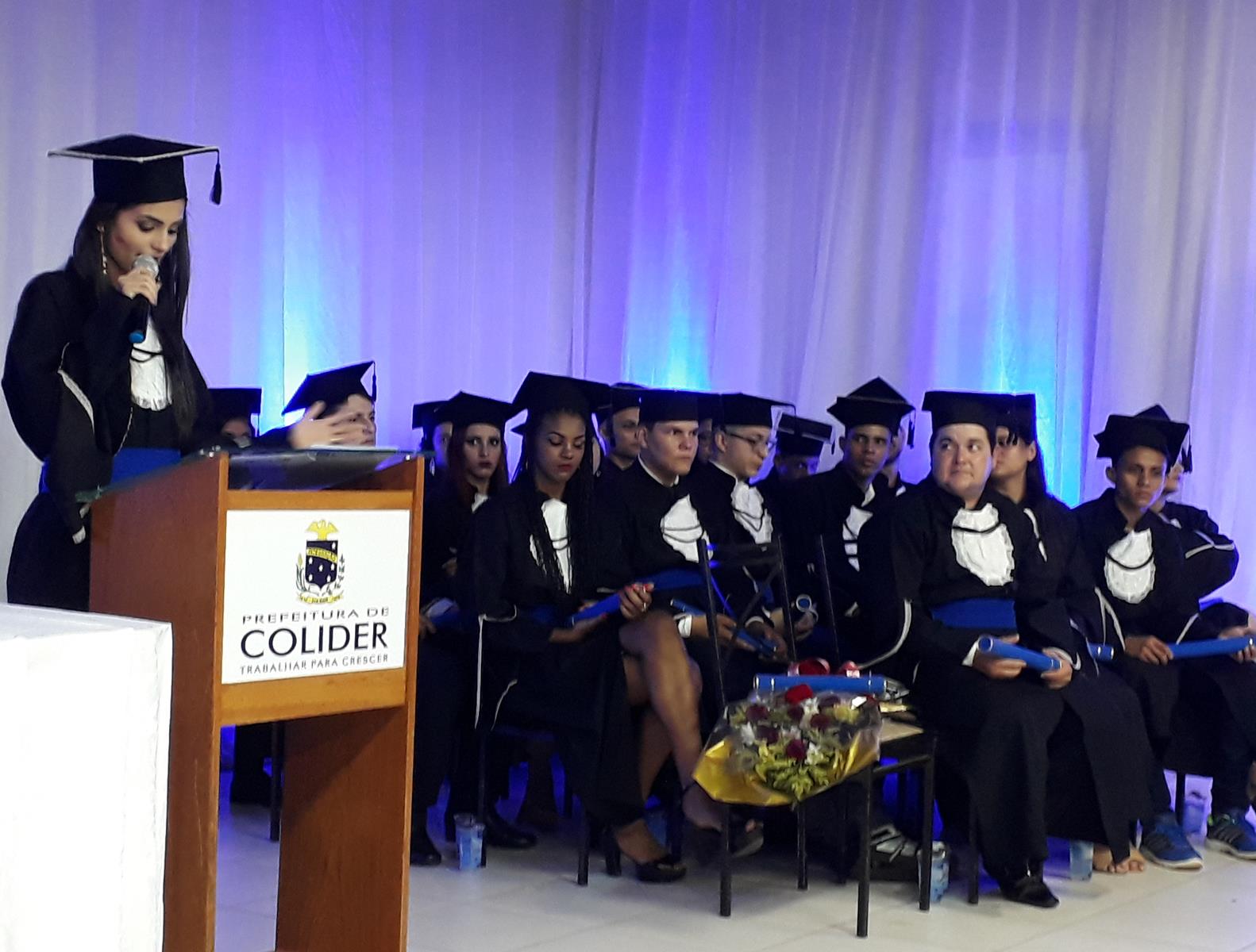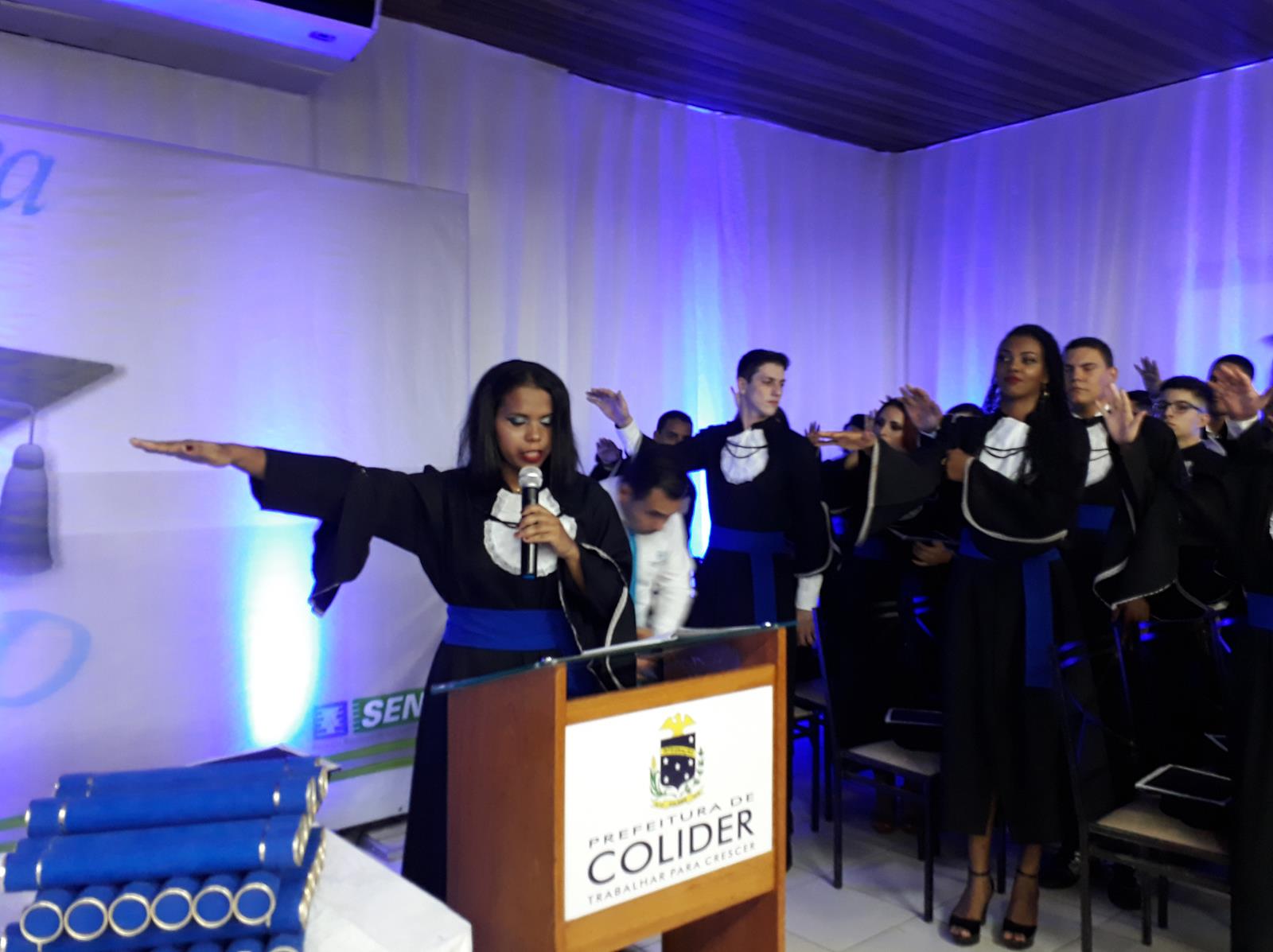 20171020_202409 (Copy) Em solenidade  ocorrida na noite da sexta-feira(20), no Centro de Eventos, em Colider, o Serviço Nacional de Aprendizagem Industrial(SENAI), realizou a Formatura  dos cursos técnicos do Programa Nacional de Acesso ao Ensino Técnico e Emprego (Pronatec), entregando novos qualificados profissionais ao mercado de trabalho, contando agora Colider e região com cinquenta e quatro  novos técnicos, sendo 22 do curso de Técnico em Meio Ambiente e 32 do Curso de  Técnico em Segurança no Trabalho.