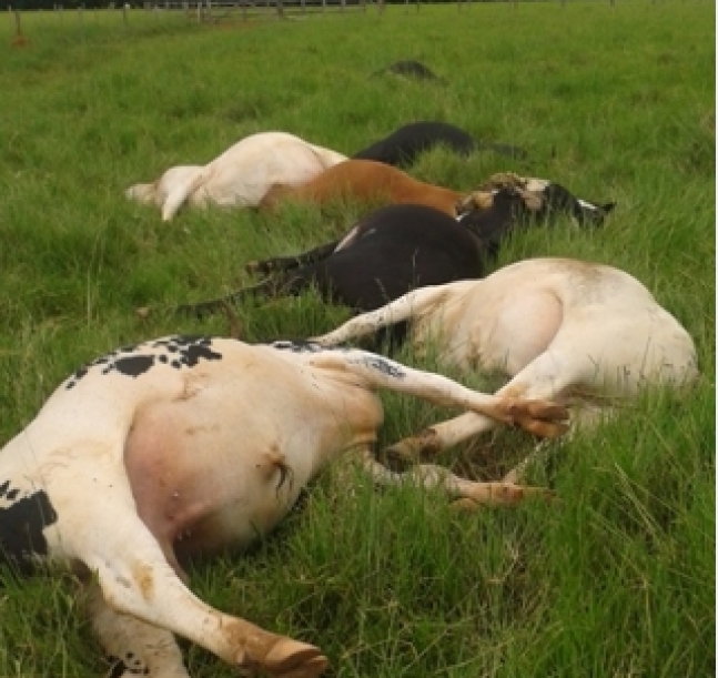 Após o rompimento de um cabo de alta tensão que passa em sua propriedade, oito cabeças de gado foram atingidas pelo fio de energia, e morreram no local. Antônio disse que na hora, não estava chovendo e o tempo estava firme.