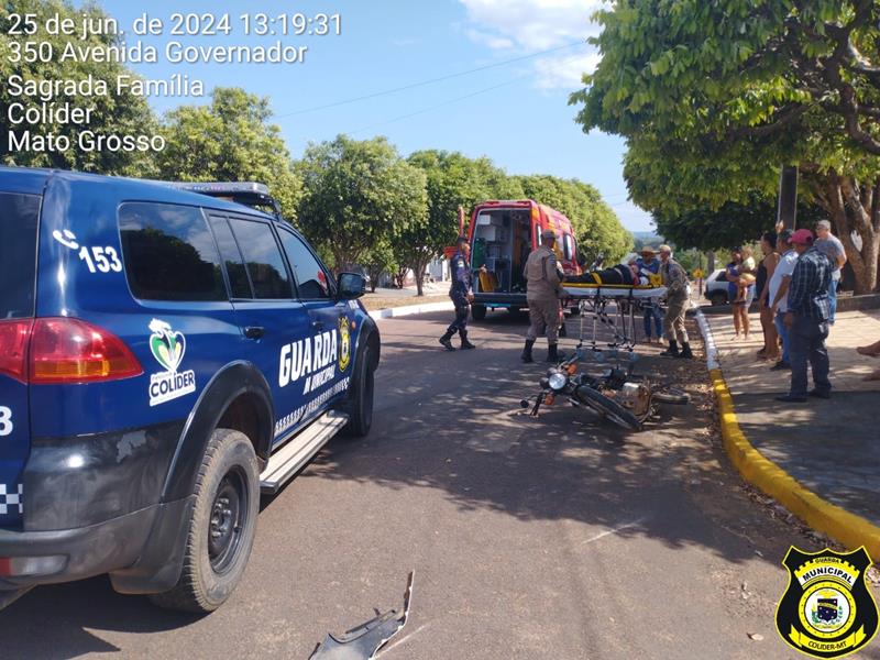 Envolvendo um carro HB20 e uma moto, ocorreu na tarde desta terça-feira(25), em Colider uma colisão registrada pela Guarda Civil Municipal (GCM), segundo a qual os referidos veículos se colidiram no cruzamento da avenida do Governador com a rua Juruena, Bairo Boa Esperança, deixando o condutor da moto, ferido.