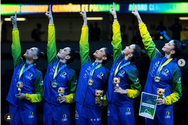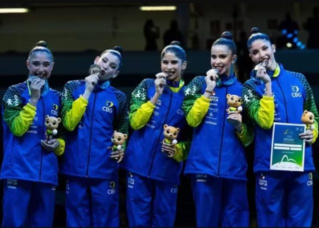 A equipe brasileira alcançou a nota 28.550, ficando atrás apenas da Ucrânia, que levou o ouro, e à frente da China, que completou o pódio com o bronze. O resultado marca um feito inédito para o país: duas medalhas na categoria de conjunto no mesmo Mundial.